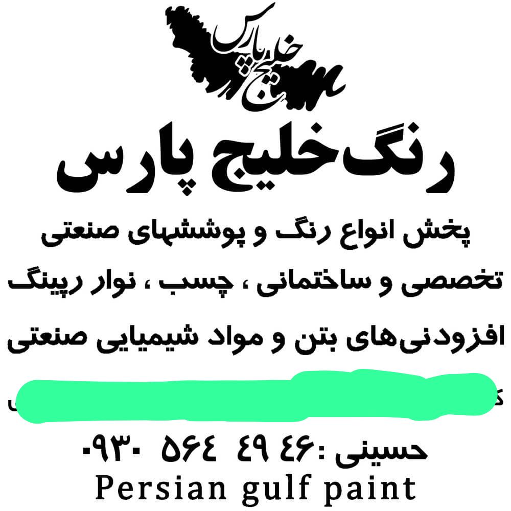 فروشگاه رنگ خلیج پارس واقع در استان بوشهر شهرستان کنگان با مدیریت سرکار خانم حسینی یکی از بزرگترین فروشگاه های رنگ در شهرستان کنگان می باشد. فروشگاه رنگ خلیج پارس در کنگان مفتخر است با ارائه خدمات پخش انواع رنگ های تخصصی دریایی، حفاظتی و صنعتی همکاری مستمر با پتروشیمی ها ، پالایشگاه ها ، شرکت ها و مشتری های گرامی را داشته باشد.